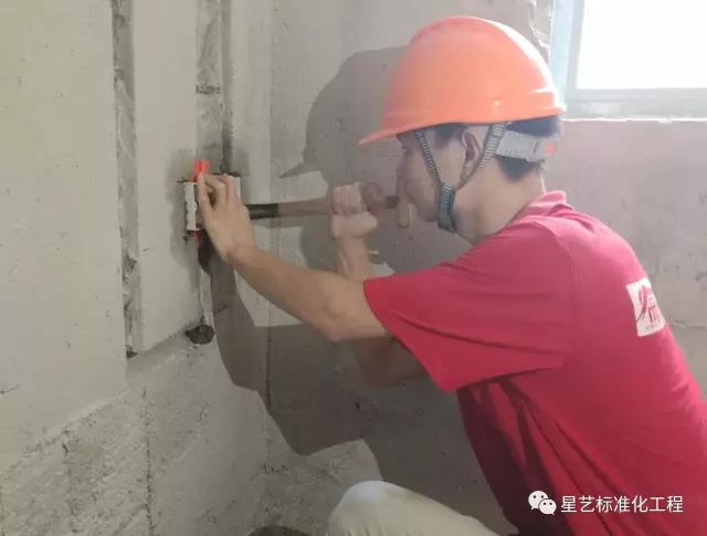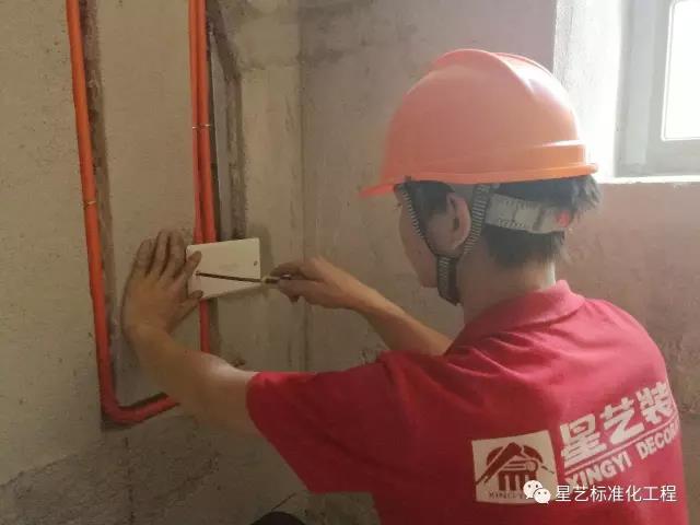 施工步驟 :定位開槽→箱體預埋→鋼筋焊接→墻體修復→布管穿線→導線聯(lián)結→蓋板封槽。下面給大家呈現(xiàn)現(xiàn)場每個步驟的施工圖。